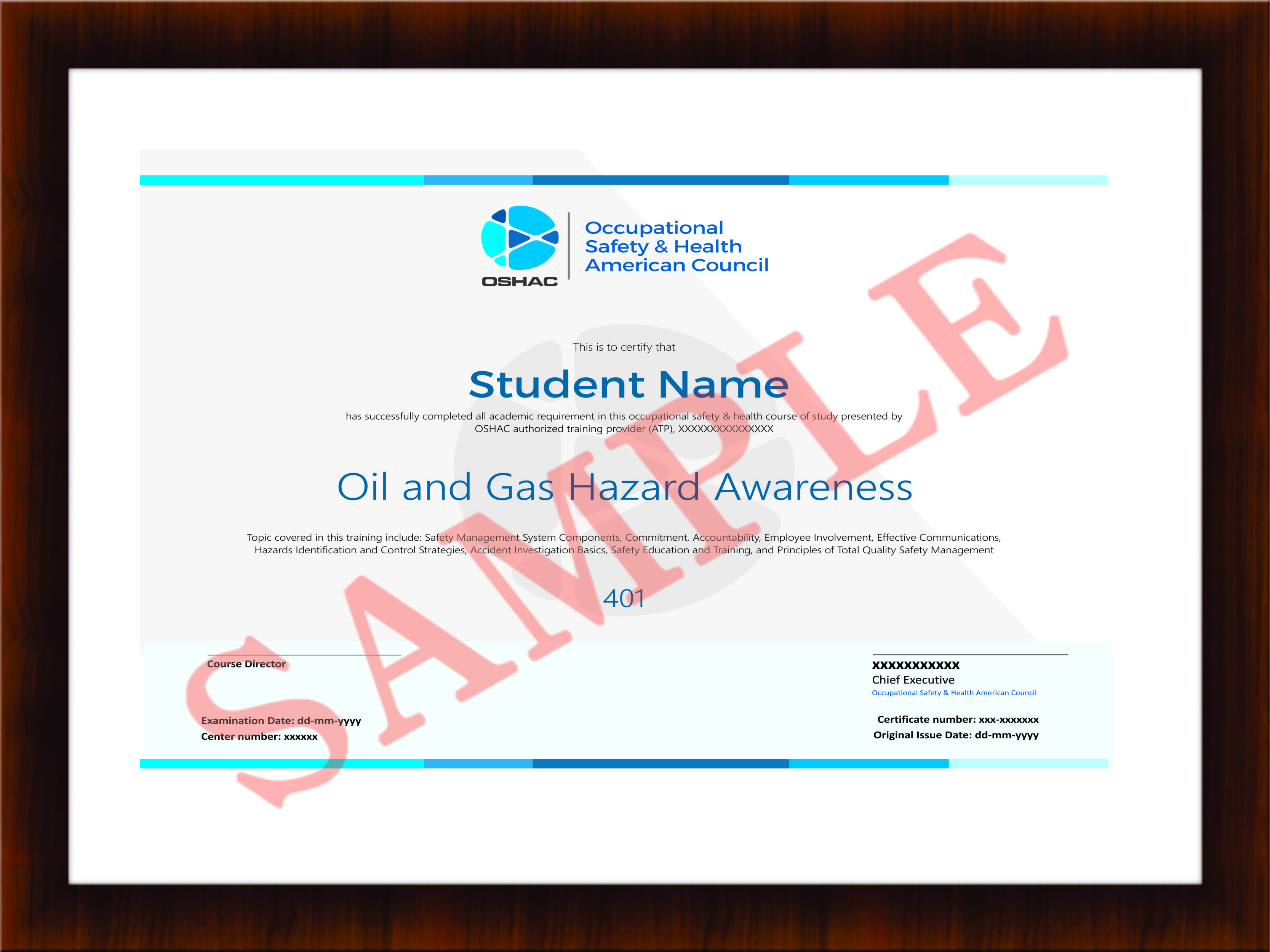 OSHAC designed this program for CEOs, managers, supervisors, safety directors, safety consultants, and other leaders within an organization who operate in a oil and gas industry setting. Any individual who has a fiscal, legal, and moral responsibility to ensure the health and safety of employees at a worksite should complete this program.